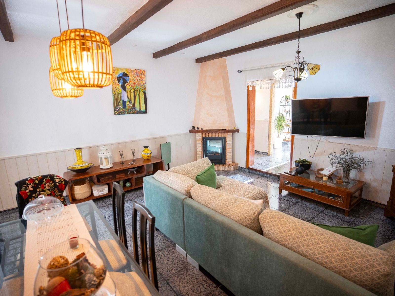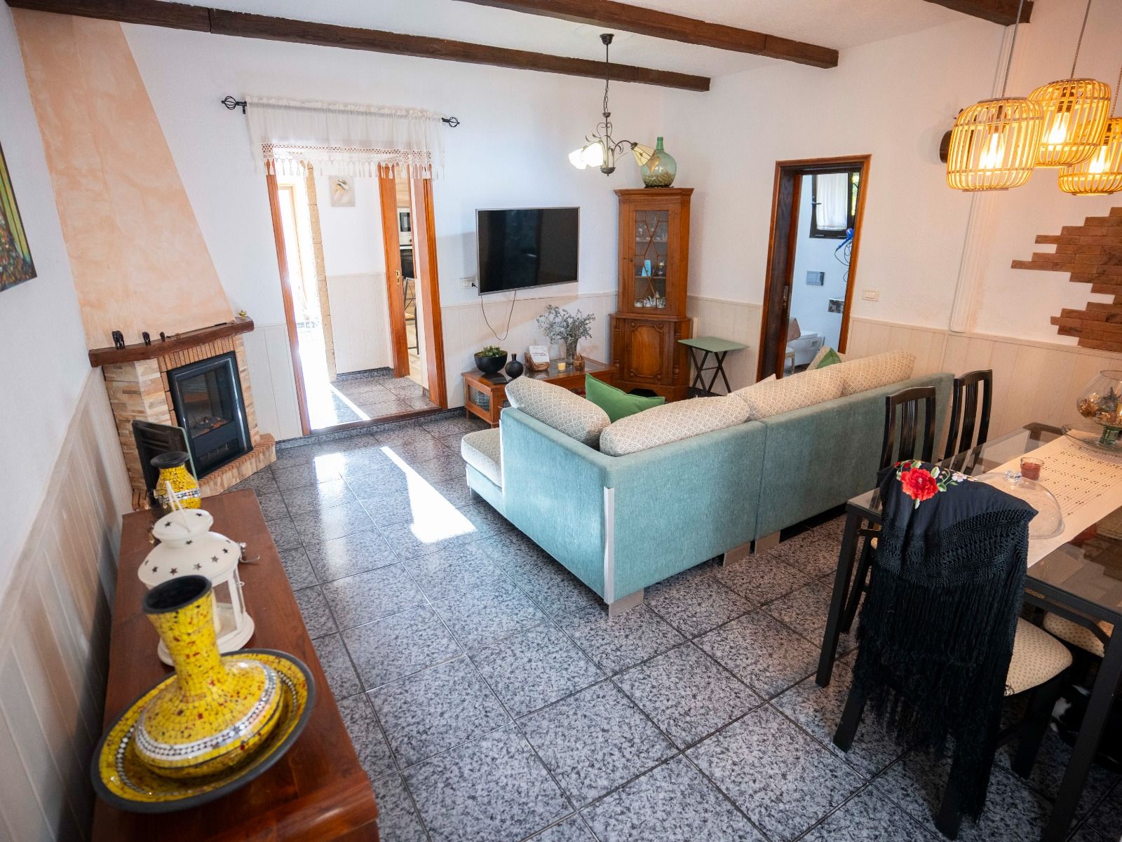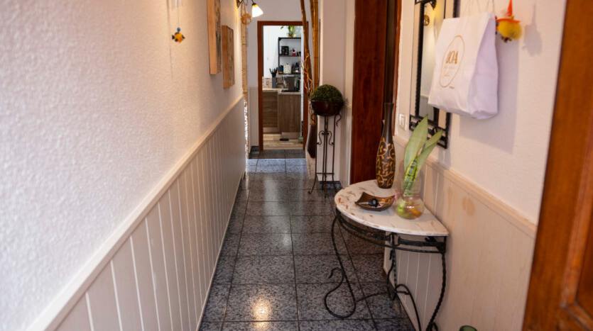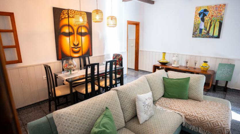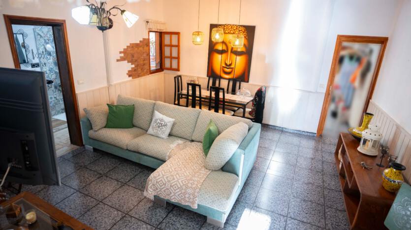 La vivienda consta de 3 dormitorios, 1baño grande, cocina independiente, amplio salón con pasillo y distribuidor. Está en una zona muy tranquila y lo mejor de la casa el jardín con zona de barbacoa, y una bodega con un baño. Buena comunicación con la autopista y de servicios